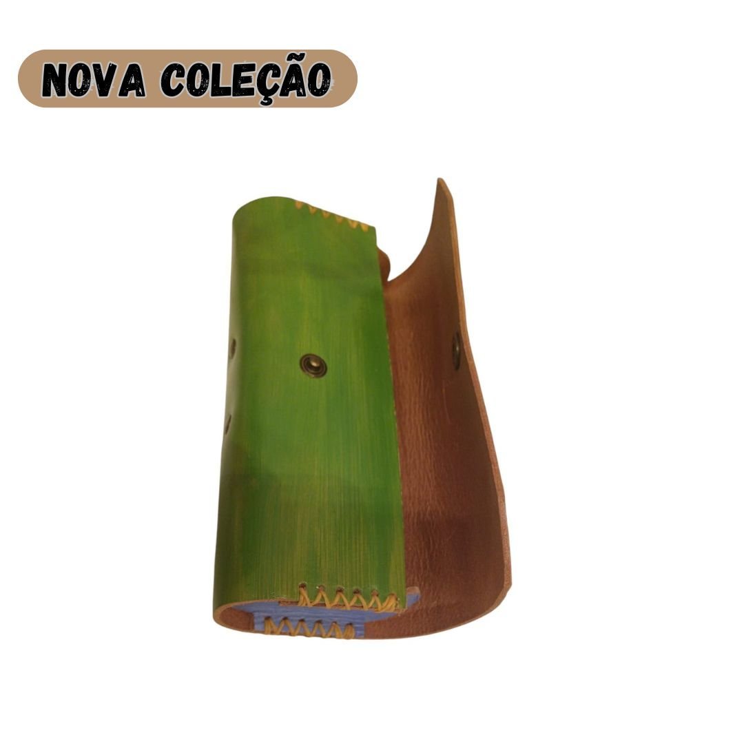Artigo em pele natural, totalmente feito à mão, cosido à mão, pintado à mão.