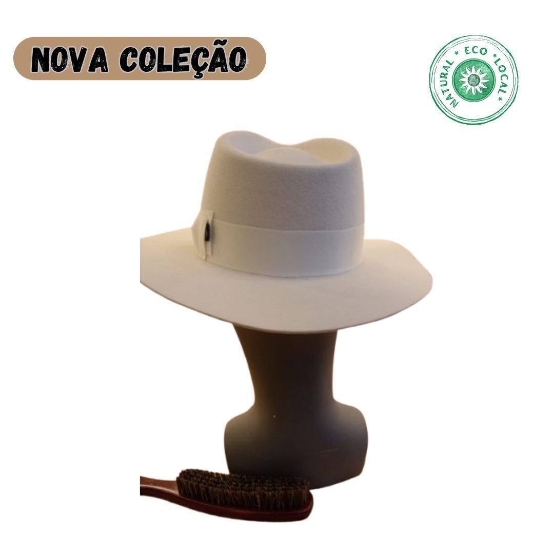 Chapéu branco de feltro de lã. Modelo Fedora