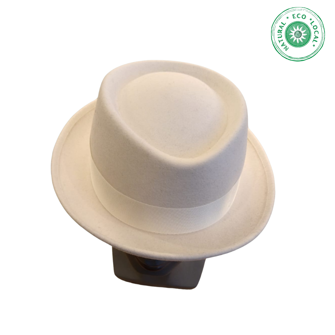 Chapéu de feltro, modelo Pork Pie, branco Aba virada, 5 cm 100% feltro lã de merino Impermeável